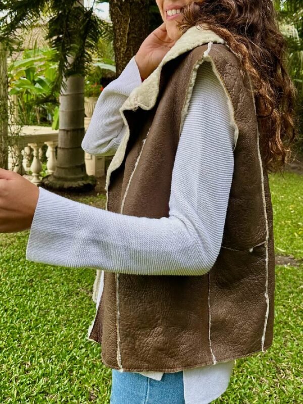 Chaleco Remo reversible, nuestro abrigo de cuero ovino genuino, te va a acompañar muchos inviernos, brindándote calidez y suavidad.